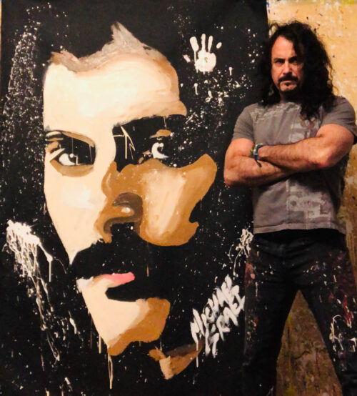 Michael Israel’s painting of Freddie Mercury as Scaramouche is a riveting homage to the legendary Queen frontman. With electrifying colors and exuberant brushstrokes, the artwork captures Mercury’s unparalleled stage presence and the theatricality of his persona.